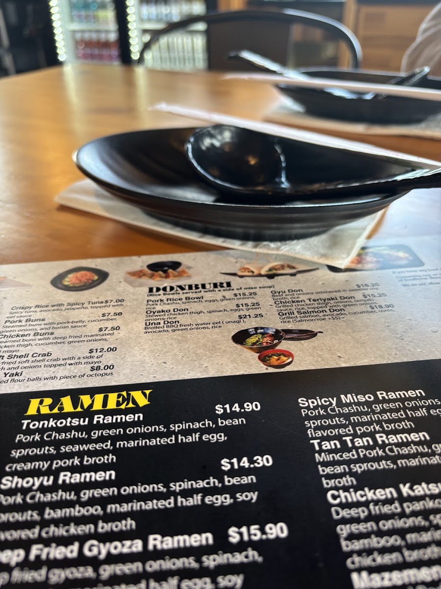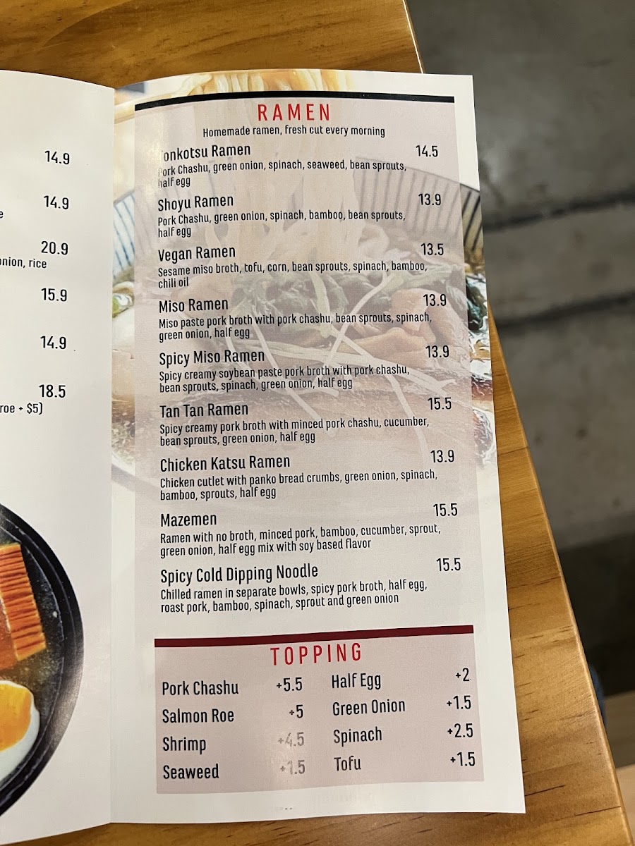 Sesame miso broth, tofu, corn, bean sprouts, spinach, bamboo, chili oil